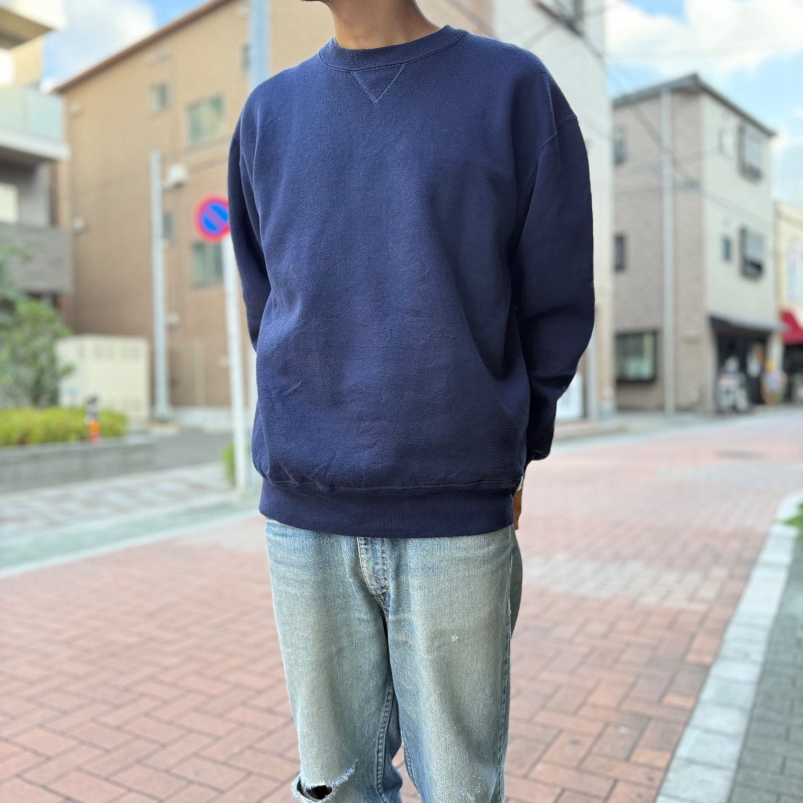 また、ネイビーカラーはフェードした際に綺麗に色が抜けていくので着れば着るほど雰囲気が増していく育てることが可能な古着