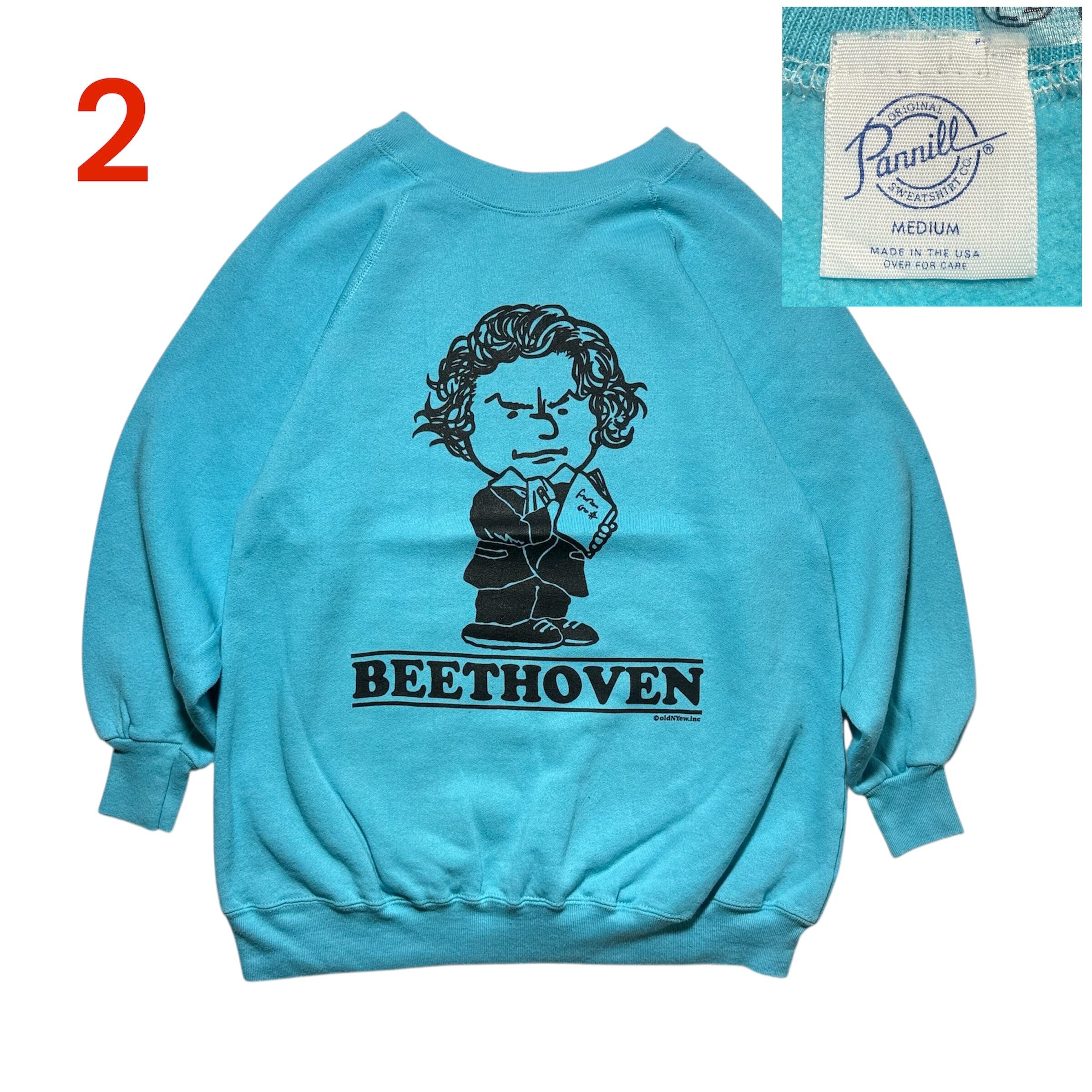 1950年から1960年代にかけて生産されたヴィンテージスウェットのデザインをベートーヴェンでオマージュし、1980年代~2000年代の古着無地ボディにプリント